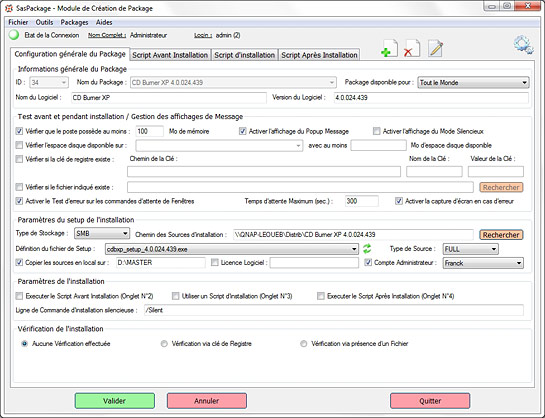 SasPackage gère facilement l'installation automatisée de vos logiciels sous NT,2000,XP,Vista et 7 dans la session courante de l'utilisateur, sans avoir à le déconnecter ou session verrouillée et même hors session, la nuit par exemple.